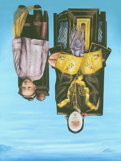 figures upside down while the landscape on