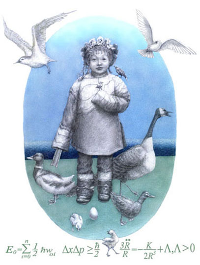 After I make a work of art it seems to leave me and have a life of its own like the birds radiating out from the body of the little girl. The creative process comes from the unconscious which is constantly producing new material, similar in ways to the zero point energy field in quantum physics. This lowest energy state of a system is also called its ground state. Yet at zero point energy a system continues to create particles. Even in the vacuum of space particles are continually being produced and reabsorbed. This ceaseless creation of parti- cles in the underlying field is like the constant activity of our unconscious mind, which is our own internal zero point energy field.